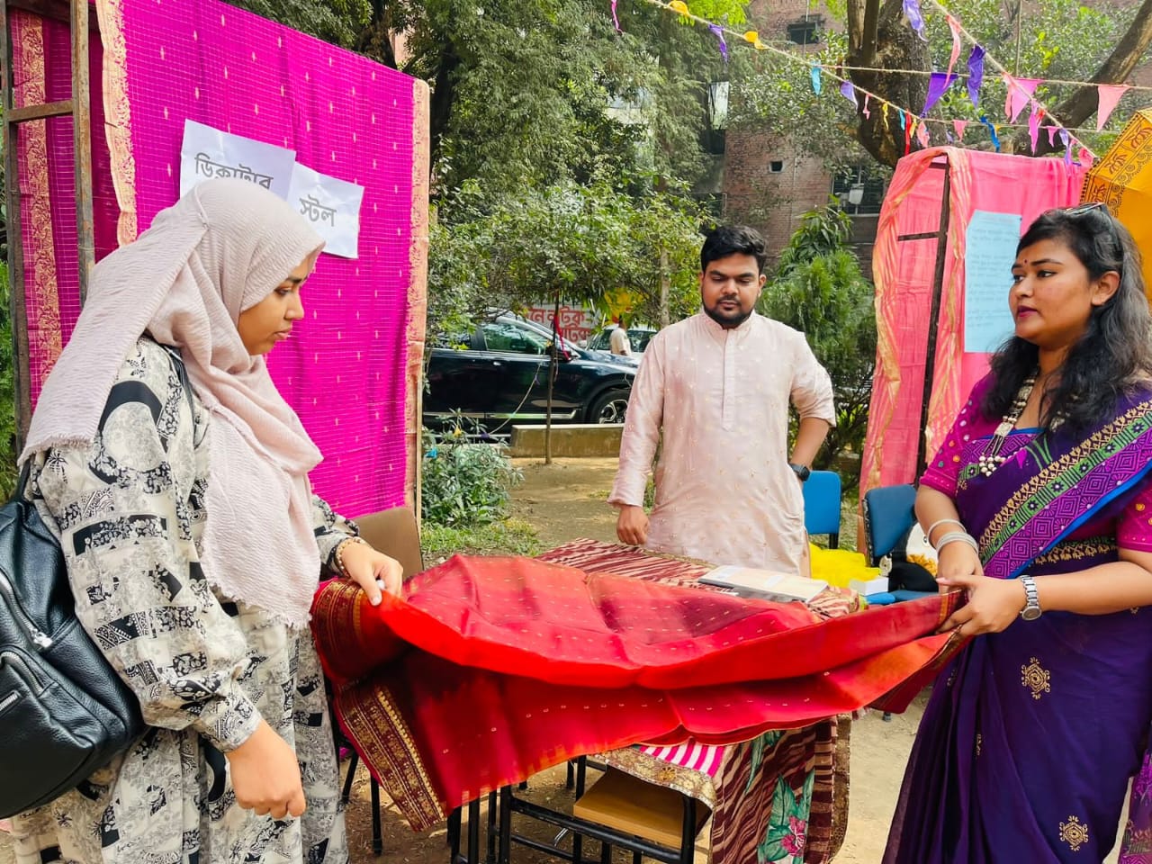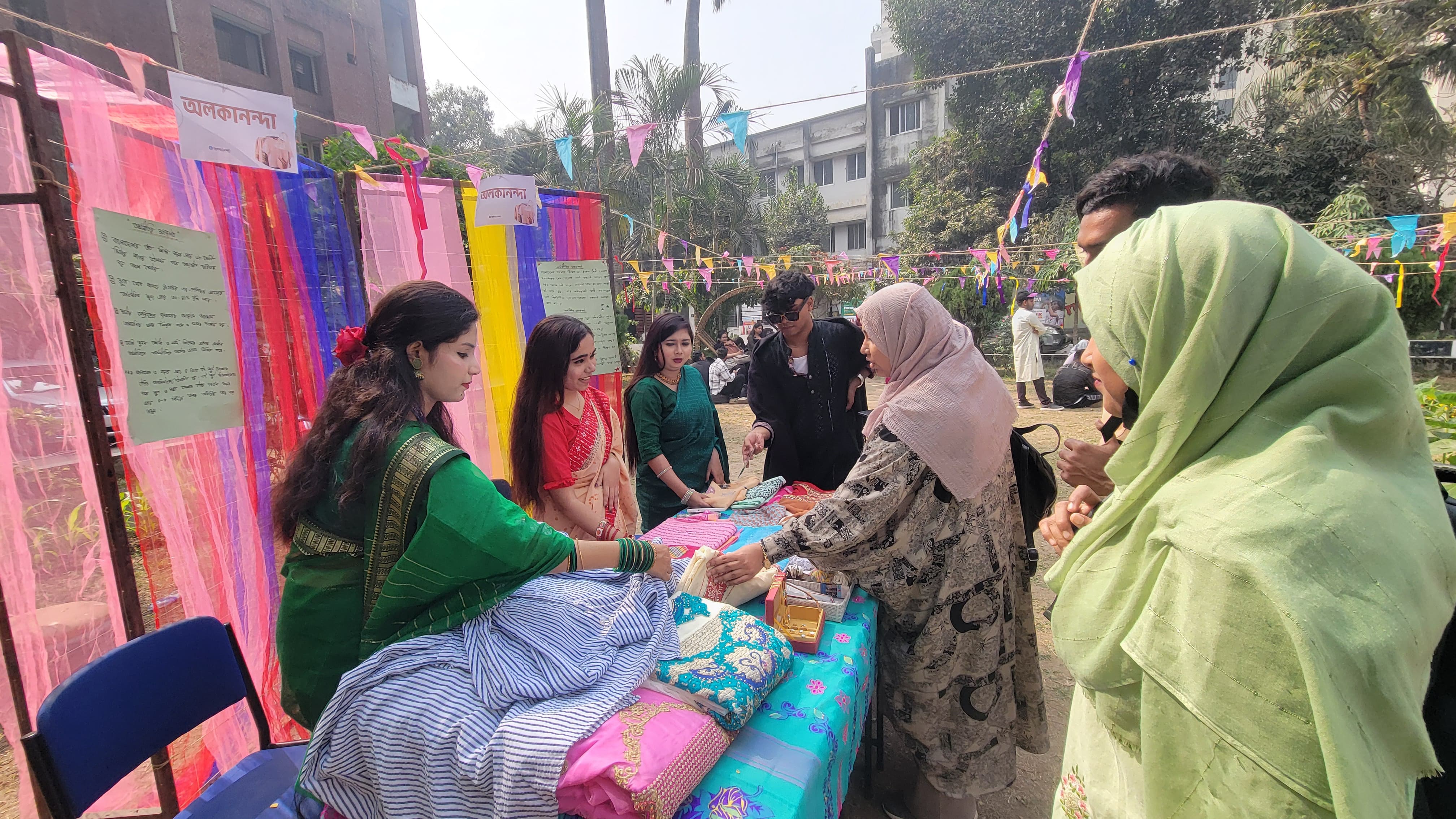 ‘অলকানন্দা’ স্টলে ছিল নারীদের দেশীয় পোশাকের সমাহার—শাড়ি, থ্রিপিস, হাতে আঁকা পোশাক ও এমিটেশন জুয়েলারি। ঐতিহ্য ও আধুনিকতার মেলবন্ধনে স্টলটি দর্শনার্থীদের বিশেষ আকর্ষণ কাড়ে।