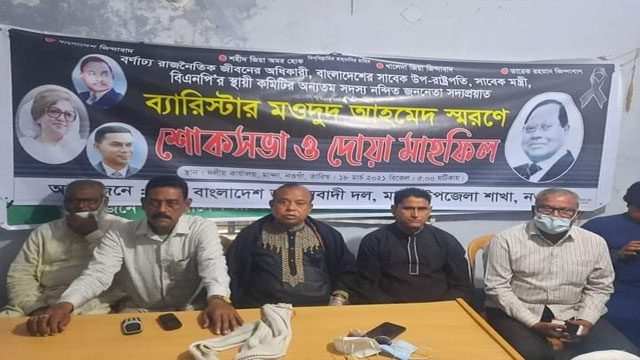 মান্দায় ব্যারিস্টার মওদুদ আহমেদ স্মরণে দোয়া মাহফিল অনুষ্ঠিত
