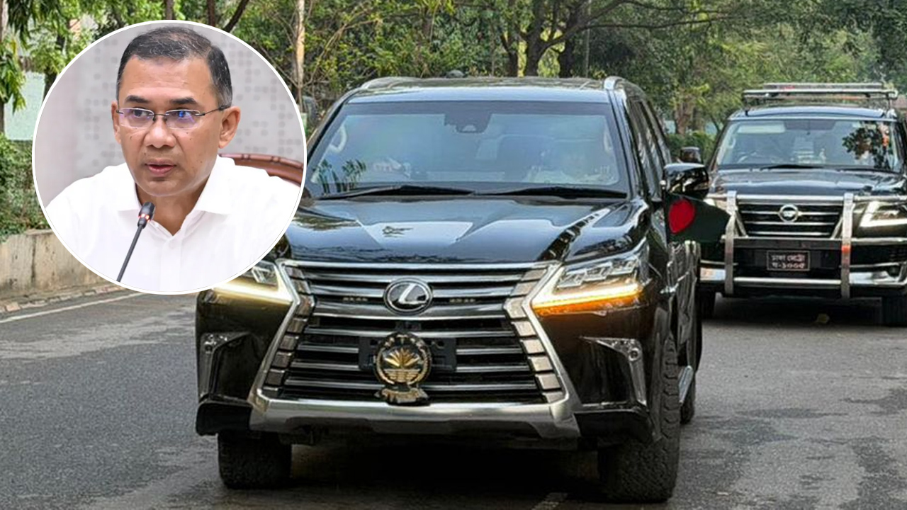 প্রথমবারের মতো প্রধানমন্ত্রী তারেক রহমানের গাড়িতে জাতীয় পতাকা