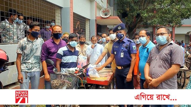 ঘরে থাকার প্রতিশ্রুতিতে পাবনায় ভ্যানচালকদের মাঝে চাউল বিতরণ