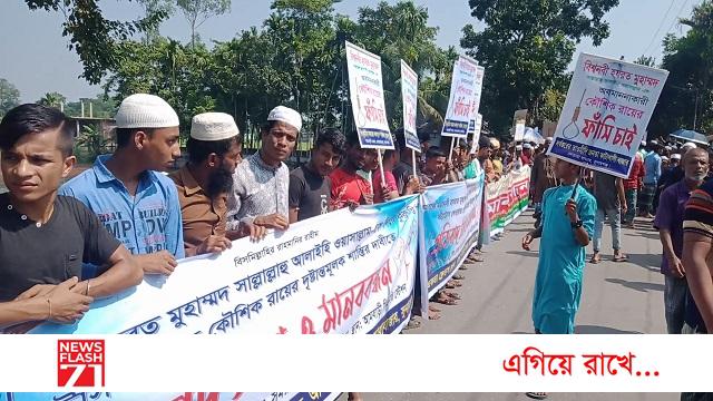কৌশিক রায়ের ফাঁসির দাবীতে সুনামগঞ্জের আমবাড়ীতে বিশাল মানববন্ধন