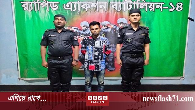 বুধবার (২৯ মার্চ) রাত সাড়ে ১০ টার দিকে র্যাব-১৪ কিশোরগঞ্জ ক্যাম্পের সদস্যরা বত্রিশ এলাকায় অভিযান চালিয়ে তাকে গ্রেফতার করে। অভিযুক্ত তিতাস কিশোরগঞ্জের হোসেনপুরে উপজেলার লাকুহাটি গ্রামের মৃত বিদ্যুৎ ঘোষের ছেলে। বর্তমানে তিনি কিশোরগঞ্জ শহরের বত্রিশ প্রামাণিক পুকুরপাড় এলাকায় বসবাস করছেন।