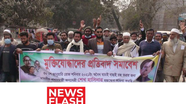 বুধবার (১৩ জানুয়ারি) বেলা ১১টায় স্থানীয় পৌর পার্কে বীর মুক্তিযোদ্ধা মো: মজিবুর রহমানের সভাপতিত্বে সমাবেশ অনুষ্ঠিত হয়। সমাবেশে বীর মুক্তিযোদ্ধা ইব্রব্রাহিম খলিল, মতিয়ার রহমান খান, মোশারফ হোসেনসহ অনেকে বক্তব্য রাখেন।