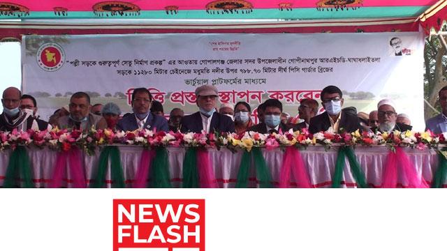 শনিবার (২৩ জানুয়ারি) দুপুরে ভিডিও কনফারেন্সের মাধ্যমে গোপালগঞ্জে মধুমতি নদীর উপর সেতুর ভিত্তিপ্রস্তর স্থাপন অনুষ্ঠানে প্রধান অতিথির বক্তব্যে তিনি এসব কথা বলেন।