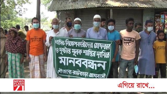 মানববন্ধনে গ্রামের বিপুল সংখ্যক নারী-পুরুষ, শিশু-কিশোরসহ সর্বস্তরের লোকজন অংশগ্রহণ করেন। হাতে-হাত দিয়ে রাস্তার দু’পাশে তারা দাঁড়িয়ে এসিড নিক্ষেপ কারীদের গ্রেফতারের দাবি জানান । এর আগে গ্রাম বাসিদের পক্ষ থেকে একটি বিক্ষোভ মিছিল বের করা হয়।