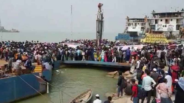 শিমুলিয়া ঘাটে ঢাকামুখী কর্মজীবীদের ঢল চলছেই