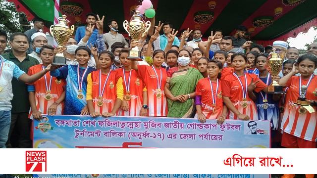 এর আগে দিনের অপর খেলায় জাতির পিতা বঙ্গমাতা শেখ ফজিলাতুন্নেসা মুজিব গোল্ডকাপ অনুর্ধ- ১৭ (বালিকা) এর ফাইনালে টুঙ্গিপাড়া উপজেলা মুখোমুখি হয় মুকসুদপুর উপজেলার। খেলার নির্ধারিত সময়ে মুকসুদপুর উপজেলাকে ২-০ গোলে পরাজিত করে চ্যাম্পিয়ন হয় টুঙ্গিপাড়া উপজেলা।