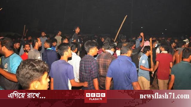 সাধারণ শিক্ষার্থীরা আবাসিক হল থেকে বের হয়ে বিনোদপুর গেটের পাশে অবস্থান নেন। আর ব্যবসায়ীরা অবস্থান নেন রাজশাহী-ঢাকা মহাসড়কে বিনোদপুর বাজারে। এক পক্ষ আরেক পক্ষকে লক্ষ্য করে ইটপাটকেল ছুড়তে থাকে। এতে আহত হন অনেক শিক্ষার্থী। ব্যবসায়ীদের মধ্যেও আহত হন অন্তত ১০ জন। এদিকে, বিক্ষুব্ধ শিক্ষার্থীদের ছত্রভঙ্গ করতে টিয়ারশেল ও রাবার বুলেট নিক্ষেপ করে পুলিশ। তবে রাত ১০টার পর ফের শিক্ষার্থীরা ক্যাম্পাসের বাইরে বেরিয়ে পড়েন। এসময় তারা বিক্ষোভ করেন।