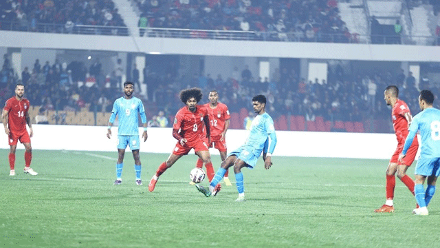 কনকনে বাতাস। ঘাসে জমছিল কুয়াশা। এমন শীতল আবহাওয়ায় জওহরলাল নেহেরু স্টেডিয়ামের গ্যালারিতে ভারতীয় সমর্থকরা কোরাসে ‘ইন্ডিয়া, ইন্ডিয়া’ আওয়াজ তুলে পরিবেশ গরম করেই রাখছিলেন। গ্যালারিতে উত্তেজনা থাকলেও স্বাগতিক ভারত ম্যাচে গোল করতে পারেনি। বাংলাদেশ ভারতের চেয়ে সুবর্ণ সুযোগ পেয়েও কাজে লাগাতে না পারায় গোলশূন্য ড্র হয়েছে।