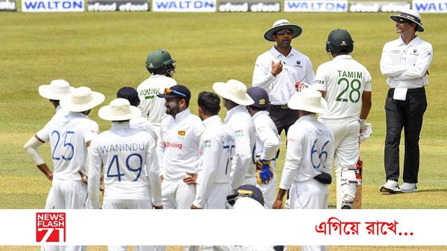 শ্রীলঙ্কার প্রথম ইনিংস শেষে ১০৭ রানে পিছিয়ে ছিল সফররত বাংলাদেশ। পঞ্চম দিনের খেলায় নিজেদের দ্বিতীয় ইনিংসে ব্যাট করতে নেমে মাত্র ১ রান করে শুরুতেই লঙ্কান পেসার সুরাঙ্গা লাকমলের বলে সাজঘরে ফেরেন ওপেনার সাইফ হাসান। দ্বিতীয় উইকেটে ব্যাট করতে নেমে রানের দেখা পাননি আগের ইনিংসের সেঞ্চুরিয়ান নাজমুল হোসেন শান্ত।