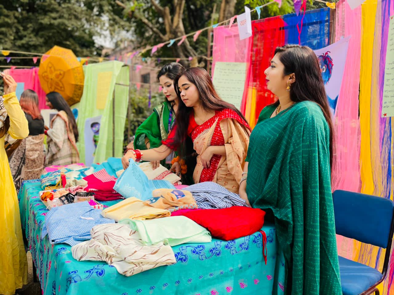 ‘অলকানন্দা’ স্টলে ছিল নারীদের দেশীয় পোশাকের সমাহার—শাড়ি, থ্রিপিস, হাতে আঁকা পোশাক ও এমিটেশন জুয়েলারি। ঐতিহ্য ও আধুনিকতার মেলবন্ধনে স্টলটি দর্শনার্থীদের বিশেষ আকর্ষণ কাড়ে।