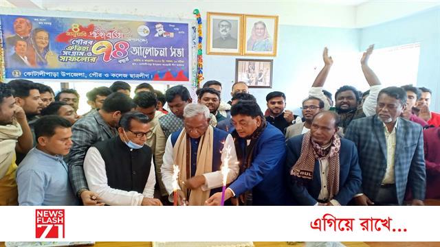 আরো ছিলেন, উপজেলা ছাত্রলীগের সাধারণ সম্পাদক রফিকুল ইসলাম, পৌর ছাত্রলীগের সভাপতি চৌধুরী সেলিম আহম্মেদ ছোটন, সাধারণ সম্পাদক আলীউজ্জামান জামির, কলেজ ছাত্রলীগের সভাপতি স্বপন তালুকদার। আলোচনা সভা শেষে কেক কাটা হয়।