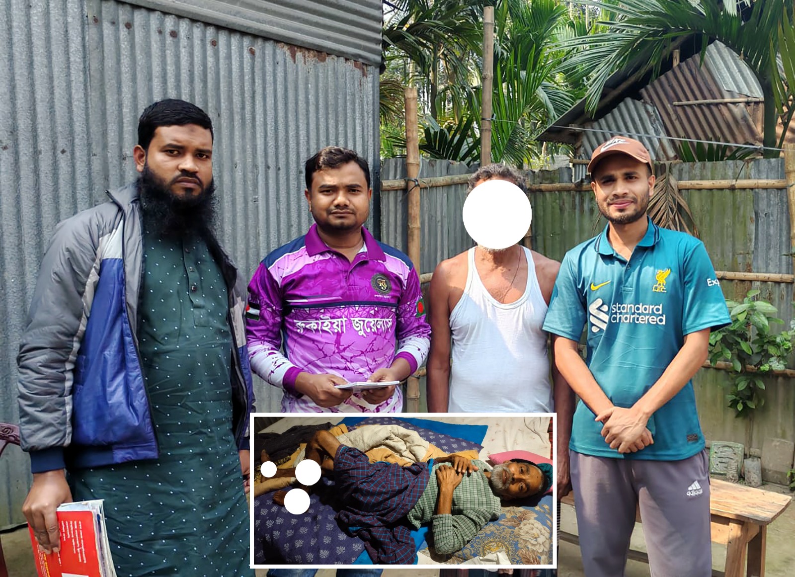 বিষয়টি জানতে পেরে স্বেচ্ছাসেবী সংগঠন “আলোর ফেরি” এবং স্থানীয় যুব সমাজ মানবিক উদ্যোগ নিয়ে প্রথমে পরিবারটির পাশে দাঁড়ায় এবং তাদের খাদ্য সামগ্রী উপহার প্রদান করে। পরে চিকিৎসা ব্যয়ের জন্য অসহায় এই পরিবারের হাতে ১৪ হাজার টাকা আর্থিক সহায়তা তুলে দেওয়া হয়।
