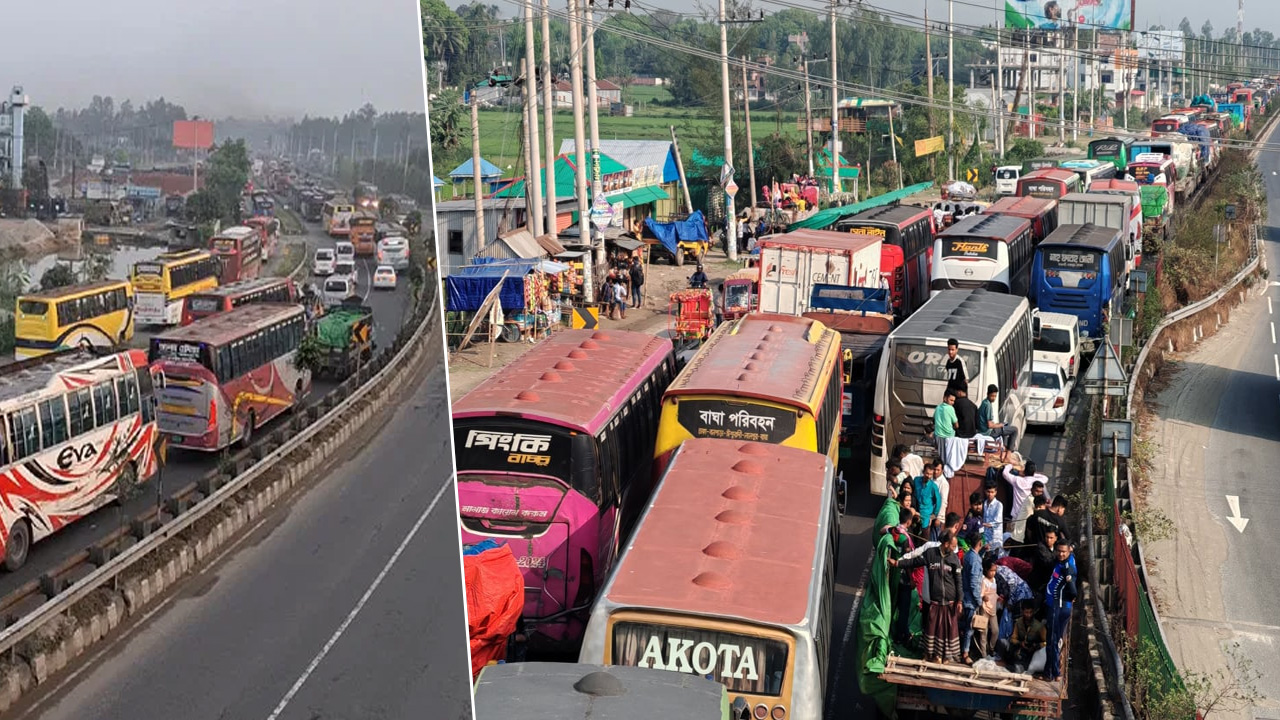 চন্দ্রা এলাকায় যাত্রী আবুল হোসেন বলেন, সড়কজুড়ে শুধু যানজট আর মানুষ। গাড়ি ছেড়ে অটোরিকশায় করে এসেও একই পরিস্থিতির মুখে পড়তে হয়েছে।
