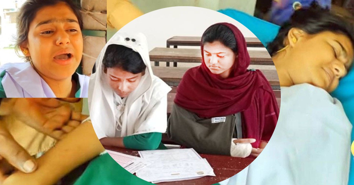 চাচার হামলায় হাত ভাঙা বিথী, প্রশাসনের সহায়তায় পরীক্ষায় অংশগ্রহণ