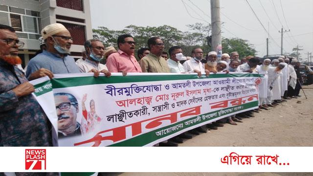বরগুনার আমতলীতে বীর মুক্তিযোদ্ধা উপজেলা আওয়ামী লীগের সিনিয়র সভাপতি আলহাজ্ব মোঃ নুরুল ইসলাম মৃধা কে লাঞ্ছিত করার প্রতিবাদে মানববন্ধন অনুষ্ঠিত হয়।