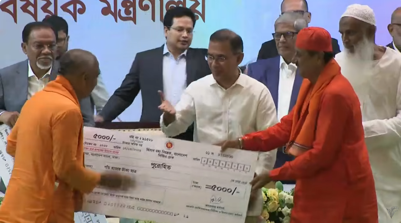 রাজধানীতে আনুষ্ঠানিকভাবে ইমাম, পুরোহিতসহ বিভিন্ন ধর্মীয় সেবকদের মাসিক সম্মানী প্রদান কার্যক্রমের উদ্বোধন করেছেন প্রধানমন্ত্রী তারেক রহমান।