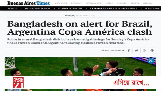 আশ্চর্যজনক হলেও সত্য, ওই সংঘর্ষের খবর প্রকাশিত হয়েছে আর্জেন্টিনার সংবাদমাধ্যম 'বুয়েন্স এইরেস টাইমস'-এ। সেই সংবাদের শিরোনাম দেওয়া হয়েছে, 'বাংলাদেশে কোপা আমেরিকা ঘিরে সংঘর্ষের ঘটনায় সতর্কতা জারি'।