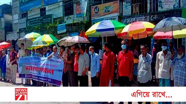 হাওরের ফসল রক্ষায় বাঁধ নির্মাণের দাবীতে মানববন্ধন