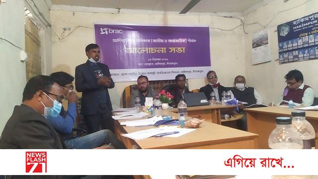 সিনিয়র জেলা ব্যবস্থাপক নির্মল কেটকার এর সঞ্চালনায় মতবিনিময় সভায় প্রধান অতিথির বক্তব্য রাখেন, কর্মসূচী ব্যবস্থাপক আজমল হোসেন। বিশেষ অতিথির বক্তব্য রাখেন, আইডিপি কর্মসূচী ব্যবস্থাপক আলবেরিকুশ খালকো, এ্যডভোকেট বিনয় টপ্য, হাকিমপুর প্রেসক্লাবের সভাপতি গোলাম মোস্তাফিজার রহমান মিলন।