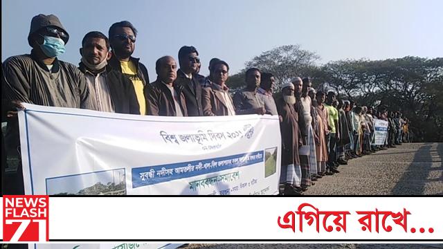 বাঁধ ও কচুরিপানা অপসারণের দাবিতে মানববন্ধন