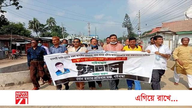 হাসান হত্যার প্রতিবাদে গাইবান্ধায় চলছে অর্ধদিবস হরতাল