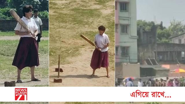 এদিন ছোট ছোট চুল, স্কার্ট আর শার্টে ব্যাট-বল হাতে মাঠে তিনি। গত সপ্তাহেই ঝুলনের বায়োপিক ‘চাকদা এক্সপ্রেস’-এর শুটিংয়ে কলকাতায় আসেন বিরাট কোহলি পত্নী। বেগুনি রঙের স্কার্টের ওপর সাদা শার্ট পরে ঝুলনের ছোটবেলা দৃশ্যে ক্যামেরার সামনে দাঁড়ান। দেখে চেনাই যাচ্ছিল না ‘রব নে বানাদে জুড়ি’ খ্যাত অভিনেত্রীকে।