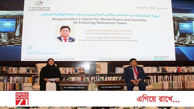 আবুধাবিতে মর্যাদাপূর্ণ এমিরেটস সেন্টার ফর স্ট্র্যাটেজিক অ্যান্ড সিকিউরিটি স্টাডিজে মূল বক্তব্য উপস্থাপন করেন পররাষ্ট্রমন্ত্রী। অনুষ্ঠানে বিশ্ব শান্তি ও বিশ্ব নিরাপত্তা বিষয়ে বঙ্গবন্ধু শেখ মুজিবুর রহমানের ভিশন তুলে ধরা হয়।