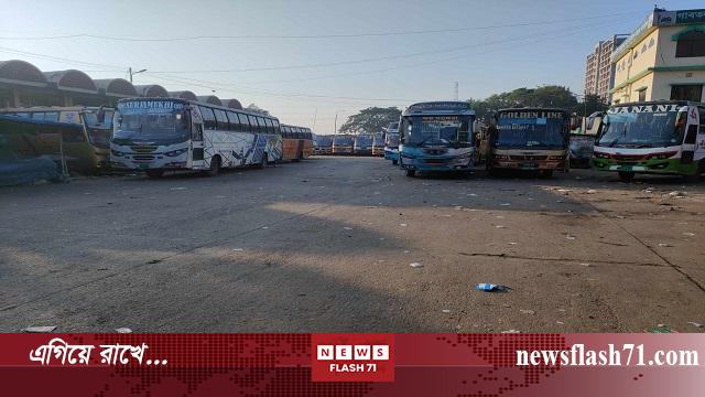 আজ বুধবার ১ নভেম্বর ভোরে বাস টার্মিনাল ঘুরে এমন চিত্রের দেখা মিললো।এদিন ভোর থেকেই রাজধানীতে গণপরিবহন চলাচল করছে। অভ্যন্তরীণ রুটের বাস পেতে যাত্রীদের খুব একটা সমস্যা হচ্ছে না। তবে গাবতলী থেকে ছেড়ে যাচ্ছে না কোনো দূরপাল্লার বাস। অধিকাংশ বাসের টিকিট কাউন্টার বন্ধছিল। এ ছাড়া যাত্রীর সংখ্যাও নেই বললেই চলে।