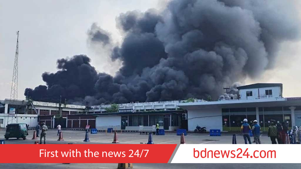 ঢাকার শাহজালাল আন্তর্জাতিক বিমানবন্দরের মালামাল রাখার এলাকায় আগুন লেগেছে, যার ধোঁয়া দেখা যাচ্ছে বহু দূর থেকে।