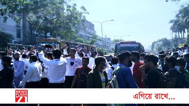 হাফ ভাড়া না নেওয়ায় শিক্ষার্থীদের বিক্ষোভ
