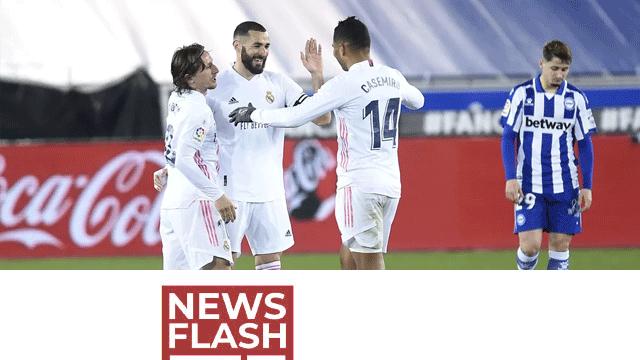 দেপোর্তিভো আলাভেসকে উড়িয়ে দিয়ে অনেক দিন পর জয়ে ফিরলো স্প্যানিশ চ্যাম্পিয়ন রিয়াল মাদ্রিদ। লা লিগার ম্যাচে শনিবার রাতে প্রতিপক্ষের মাঠে ৪-১ গোলে জিতেছে রিয়াল। জোড়া গোল করেন করিম বেনজেমা, একটি করে এদেন আজার ও কাসেমিরো। আলাভেসের গোলটি করেন রিয়ালের সাবেক স্ট্রাইকার হোসেলু।
