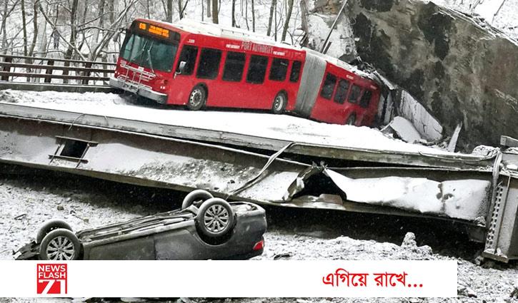 স্থানীয় সময় শুক্রবার সকালে (২৮ জানুয়ারি) তুষারাবৃত ফোর্বস এভিনিউ সেতু ধসে পড়ে।