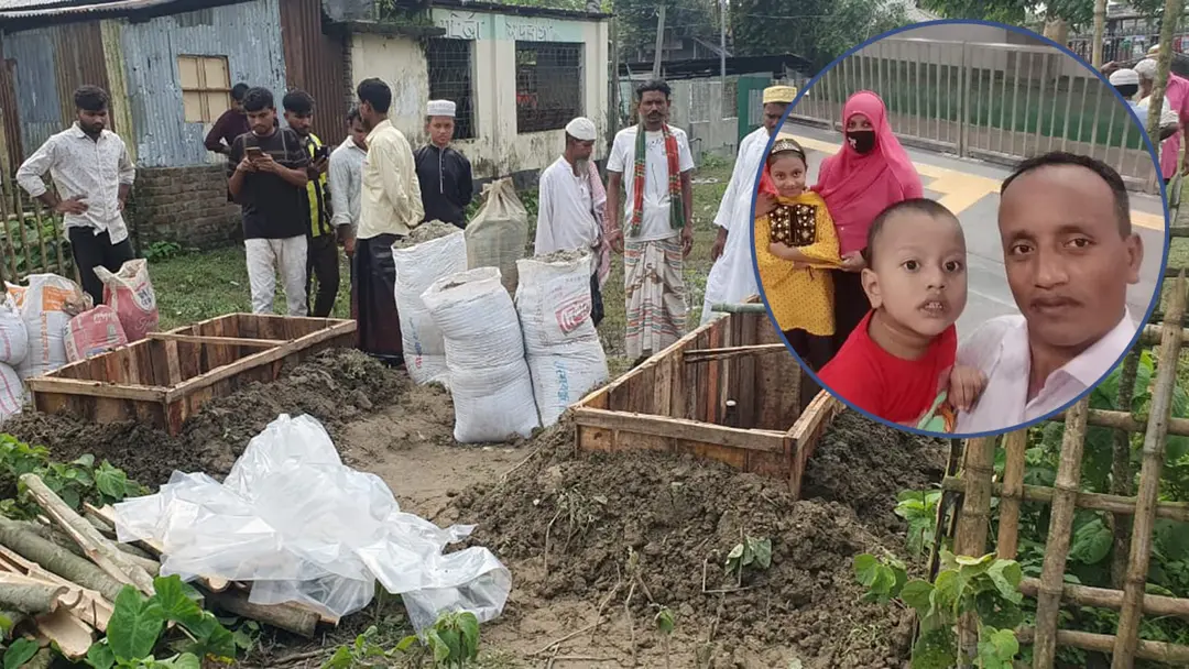 নিহতরা হলেন, হাবিবুর রহমান (৩৫), তার স্ত্রী পপি সুলতানা, নয় বছরের ছেলে পারভেজ রহমান এবং তিন বছরের মেয়ে সাদিয়া আক্তার। মৃত্যুর পরও যেন একসঙ্গে থাকার আকুতি—সেই ভাবনাতেই তাদের পাশাপাশি শায়িত করা হয়েছে।
